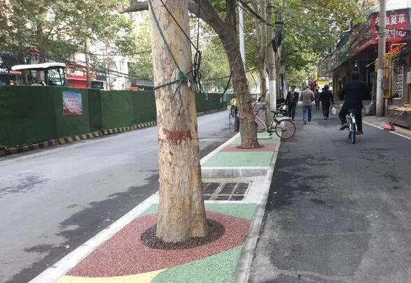 鄭州街頭綠化樹(shù)下鋪上新型的透水混合材料 2018-11-09