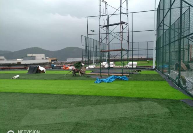 球場長50米、寬18米,采用5厘米的優(yōu)質(zhì)人工草坪及優(yōu)質(zhì)環(huán)保無味膠粒,完善了防水與下水功能,為確保安全球場四周設(shè)置6米高的圍欄,并設(shè)置防風(fēng)穩(wěn)定桿。