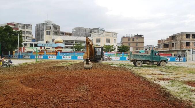 7月16日早上,一臺挖掘機(jī)和1輛卡車緩緩開進(jìn)文地中心校外操場,引來眾人圍觀。原來,這是該校硬化足球場的工程開始了。