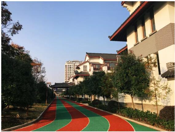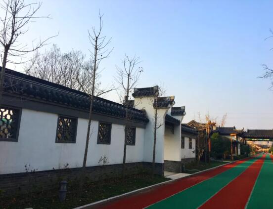 跑道呈橢圓形狀,南北長(zhǎng),東西短。跑道的外側(cè)是筆直的行道樹(shù),東西兩側(cè)一律是排列整齊的水杉,南邊入口廣場(chǎng)外側(cè)是法國(guó)梧桐,內(nèi)側(cè)緊挨東西向跑道的是廣玉蘭,北面臨河。