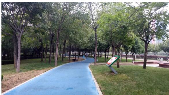 不得不說東區(qū)的硬件配套是很好的,繼續(xù)向北跨過農(nóng)業(yè)南路之后通向東風(fēng)南路的這一段同樣是綠化非常好,在這里也見到了散步和跑步人。盡管這里沒有塑膠跑道,但是這里也是非常適宜跑步的地方。秋日的早晨非常涼爽,在這里跑步很舒服。