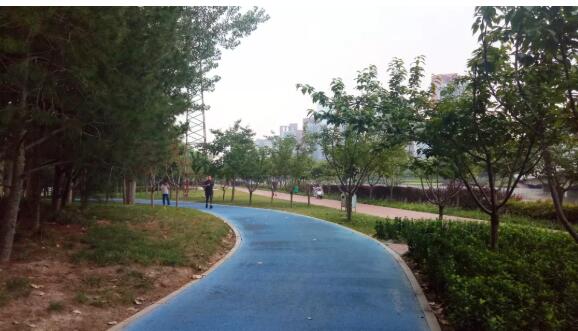 對于室外跑步愛好者來說,最美的環(huán)境我認為還真不是標準的體育場400米跑道,而是像這樣綠樹蔥郁,跑道曲折蜿蜒,旁邊就有水系的環(huán)境當中。在這里跑步不僅能感受到橡膠跑道帶來的舒適感,更是覺得樹木多的地方空氣就是好。