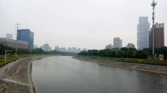 這是跑道同側(cè)的七里河河道,雖然旁邊有了跑道,但對于散步的人來說可以走在這條磚鋪的道路,一邊綠樹蔥郁一邊河水流淌,感覺非常好!