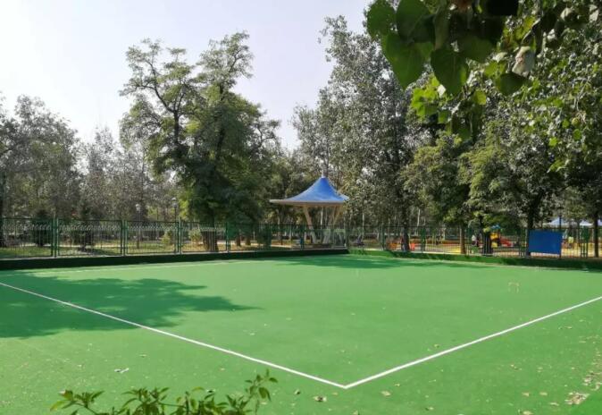 該項(xiàng)目設(shè)計理念由“一帶五園”貫穿,“一帶”是根據(jù)區(qū)域紅色文化特性,采用紅色塑膠跑道環(huán)繞整個場地。“五園”是根據(jù)區(qū)域有皇家園林特性,由寄暢香洲,兒童七彩樂園、綠蔭廣場、彩虹雙苑、翠竹聞鶯組成,加以種植喬木、灌木同時配以特色小品、燈光等,達(dá)到簡潔、開放、舒適的整體風(fēng)格。之前連路燈都沒有,現(xiàn)在,800米的塑膠跑道邊還有夜跑燈呢!