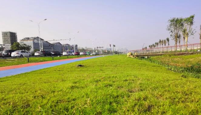 珠海機場東路綠化美化提升項目打造了珠海首個健康步道體系,整個跑步道和綠道結合了海綿城市建設需求,被整體設置為透水鋪裝,并與雨水花園、調蓄池、傳輸型植草溝等多種措施協(xié)同,打造了有別于珠海其他地區(qū)的濱水景觀,這個項目建成后將成為珠海海綿城市核心區(qū)第一個大型落地項目。