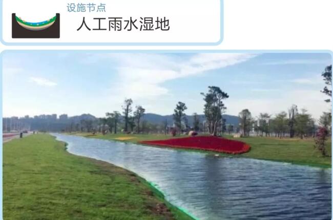 利用物理、水生植物及微生物等作用凈化雨水,是一種高效的徑流污染控制設施,雨水濕地常與濕塘合建并設計一定的調蓄容積。雨水濕地結合基質、微生物、濕地植物三者對污染物質進行吸附、吸收、轉化,過濾,具有較高的凈化效果,同時與環(huán)境結合較完美。