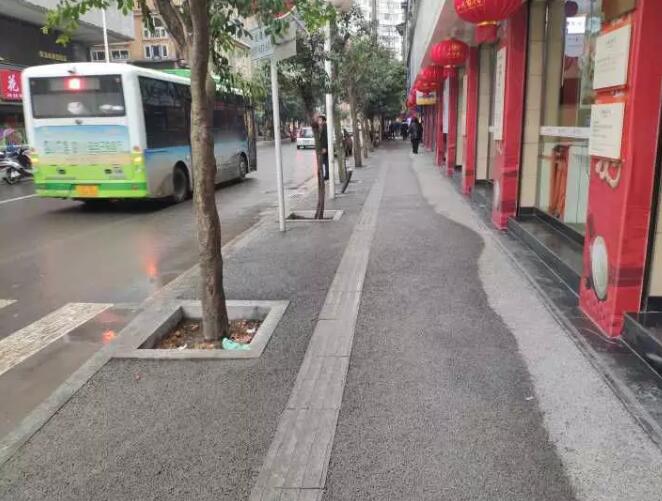 快看,平昌老城區(qū)人行道鋪設(shè)透水混凝土