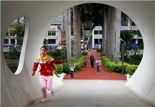 少年奔跑的身影,與潘塘公園綠道的那抹紅色,成為一道靚麗的風景。