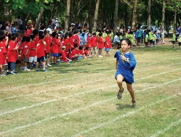 柬埔寨北橋國際學(xué)校運動會接力賽現(xiàn)場,這所著名的國際學(xué)校的跑道用的是草皮。