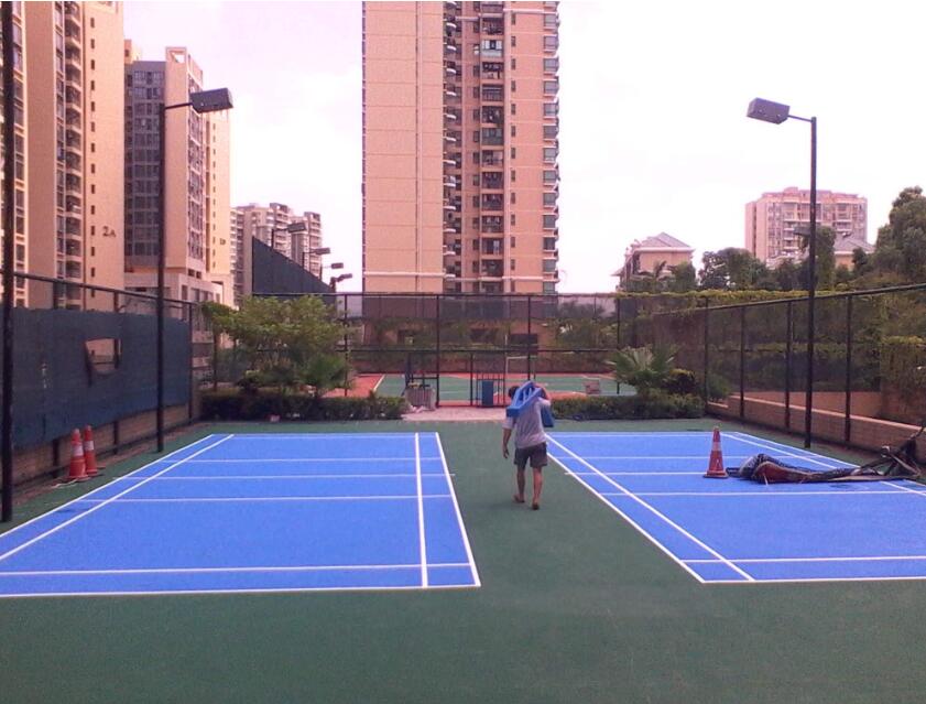 1、在施工期間或施工完成初期出現(xiàn)局部起鼓現(xiàn)象,是因為基礎(chǔ)不夠清潔、牢固或基礎(chǔ)水汽蒸發(fā)氣壓過大,丙烯酸球場面層過厚等原因?qū)е峦繉优c基面剝離分層。將鼓泡部位擴大面積鏟掉至基礎(chǔ)層,掃清基面,再用足量底料稀釋液涂刷需修補處,讓其充分潤濕基面,加固基礎(chǔ)的同時增加粘接性,再在上面按步驟用相應(yīng)材料處理補平;