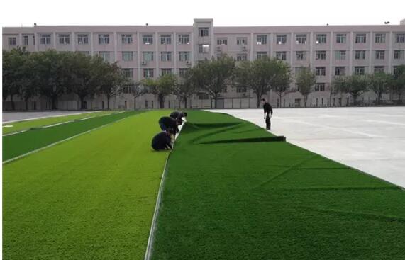 除開膠水質(zhì)量問題(當然,我家用的是草坪專用膠水,通過國家環(huán)保檢測標準的,請放心使用),要注意的是涂刷的厚薄度,晾曬的時間。厚薄不均會使草坪凹凸不平;膠水晾曬時間過短,草坪粘不牢,時間過長,草坪粘接后會開膠。這些都是施工師傅的場地施工經(jīng)驗總結(jié)出來的。