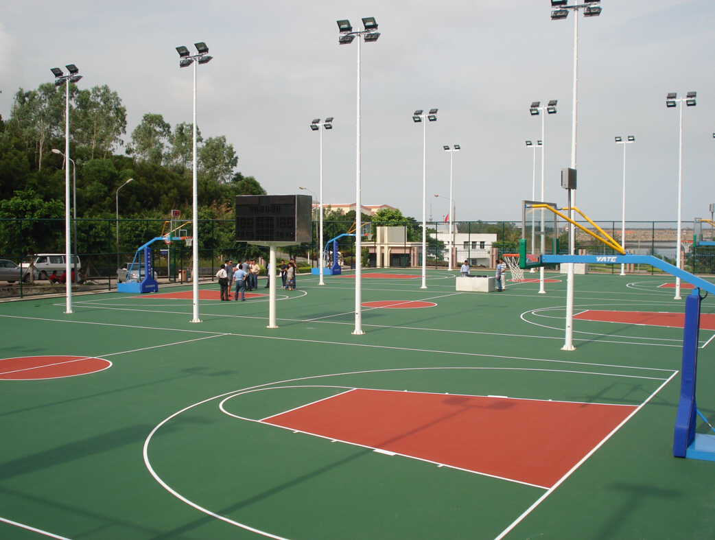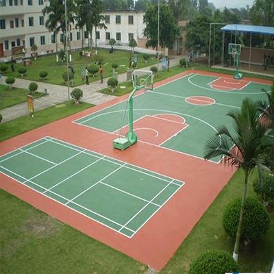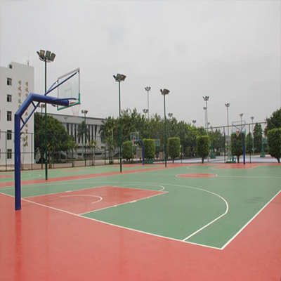 彈性丙烯酸籃球場:由100%的丙烯酸類材料和特制的聚合橡膠顆粒組成,具有良好的韌性,并可以遮蓋因基礎產生的細小裂縫;一年四季都能保持良好效果。具有極佳的減震性能,減輕打球者腳部和腿部受到的震蕩(尤其是和非專業(yè)選手及休閑娛樂);消除因設施產生的疲勞,提高運動樂趣。