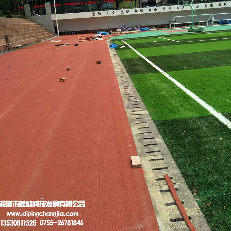 采用環(huán)保的天然橡膠、合成橡膠和環(huán)保助劑等材料預(yù)制模壓印花,通過自動化生產(chǎn)線,經(jīng)高溫(180~200℃)一次性預(yù)制生產(chǎn)成型。具有環(huán)保和良好的耐候性、耐磨性,具有厚度均勻、彈性均勻、耐釘刺、抗老化能力強、抗沖擊吸收好、回彈優(yōu)異等特點。是環(huán)保要求和運動員比賽提高成績首選產(chǎn)品,各項技術(shù)指標均符合國標及國際田聯(lián)IAAF要求。